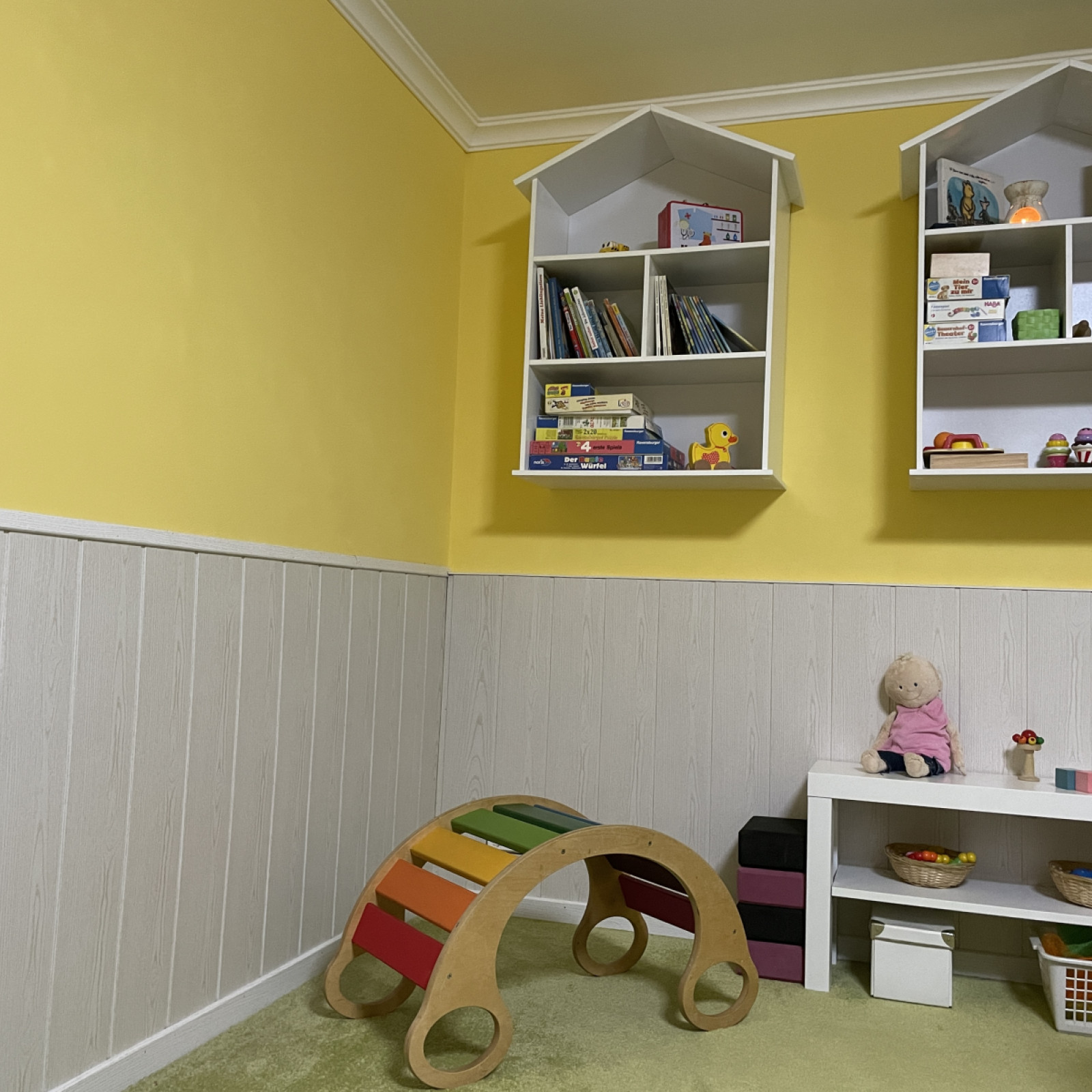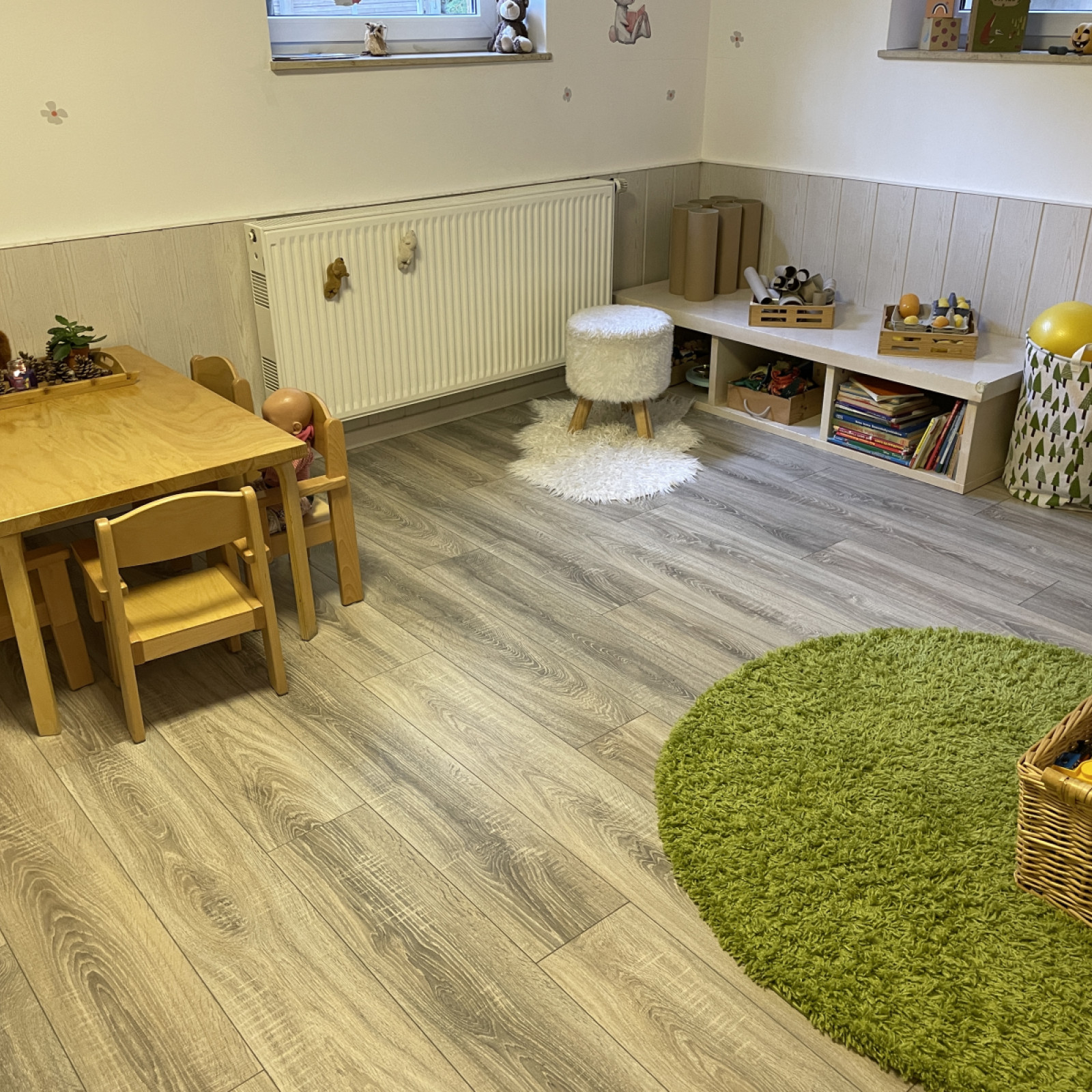 Die Räume meiner Kindertagespflege bieten den Kindern viel Platz zum Spielen, kreativ sein und ausruhen . Es stehen 2 liebevoll eingerichtete Räume sowie ein ein Bad mit einer Fläche von insgesamt 60 Quadratmetern für vielfältige Entdeckungen bereit. In unserem Haus sind die Betreuungsräume auf einer separaten Etage für die Kindertagespflege eingerichtet. Die Einrichtung ist modern und mit der kindgerechten Ausstattung fühlen wir uns hier jeden Tag wohl.